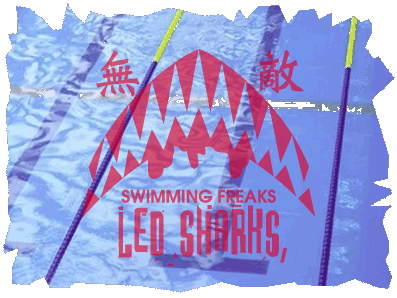 | 水泳とROCKを愛する、スイミングチーム「LED SHARKS」 不定期に東京体育館屋内プールでゲリラ的に活動。活動目的は「世界征服DESTROY〜ANARCHY & SWIMMING〜」。肥満体質をDESTROY!、日頃の体力作りにANARCHY & SWIMMING!、高カロリーな食事にFUCK OFF!。スケーターやボーダーだけがロックではない。裸一貫で泳ぎまくってこそロック!もがき苦しみ、ただひたすら猛突進する水泳こそが俺達の生き方だ。スタイルはいらない、己の限界に向かって泳ぐのみの攻撃型スイミングチーム。 ※現在会員募集はしていません。一般の参加希望は受け付けません。 |